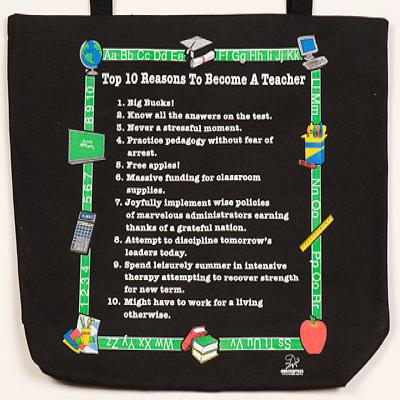 Humorous Top Ten List Teacher totebag. Great teacher gift. Heavy natural canvas tote bag 18 in. X 14 in. Funny Top 10 List.