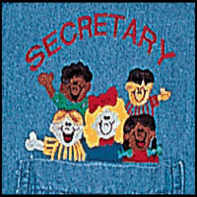 "School secretary denim shirt. The word ""Secretary"" is embroidered, along with the faces of happy children. Denim shirt with embroidery. Adult Ladies Cut 100% cotton. Great gift for school secretaries!" 2 S, 1 XXXL available