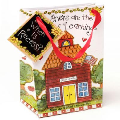 Teachers Are the Heart of Learning - Mini Gift Bag 3 x 5. Bag with school building picture that is great for wrapping your teacher gifts!