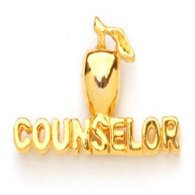 Golden Apple Counselor Lapel Pin. Counselors wear this lapel pin with pride. Tack back 1/2in. Show your counselors how important they are to the world with this great pin!
