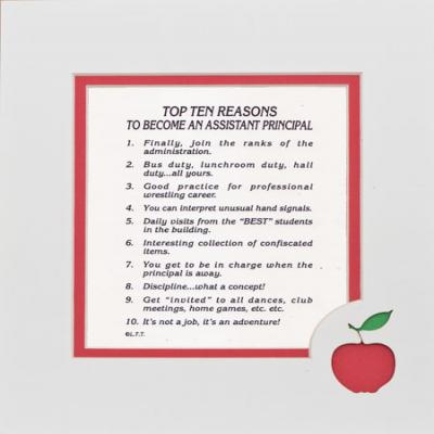 Top Ten Reasons to Become …in an apple die cut mat. Ivory or white mat 8in.X10in.