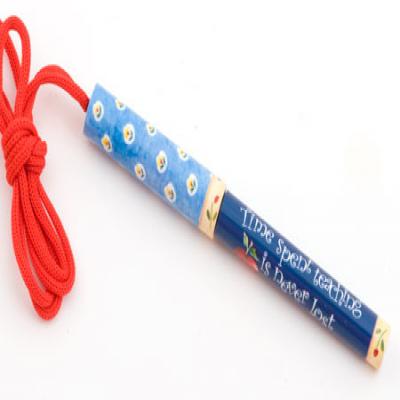 Time Spent Teaching is Never Lost ink pen with rope attached for wearing around the neck.