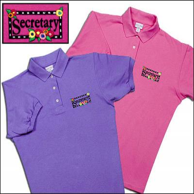 Secretary Flower embroidery pique polo shirt. Colors available are pink or lavender Ladies cut. 100% cotton