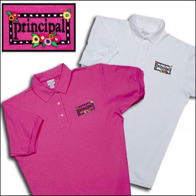 Principal Flower embroidery pique polo shirt Colors available are pink or white. Ladies cut 100 % cotton