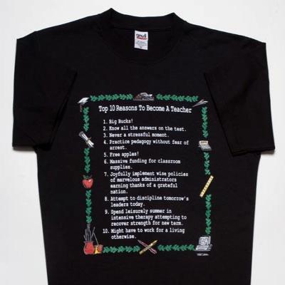 Every teacher knows why they became a teacher. This is the humorous shirt that tells you why. Adult Black T-shirt 100% cotton