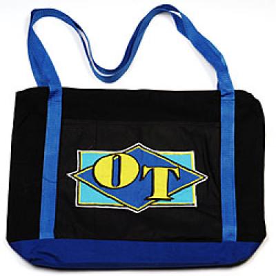 Heavy canvas 17in. X 14in. black with royal blue trim appliqued design
